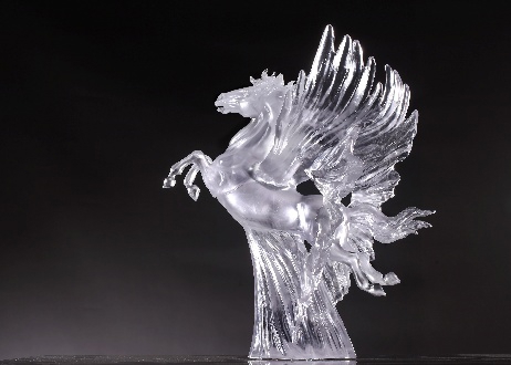 《荣耀之巅》并非凡间的马,而是人类心中所想象的神骏。整体造型色彩斑斓,犹如朝霞盘旋天际,骏马侧首昂扬,鬃毛如云烟翻涌,与光影连成一线。