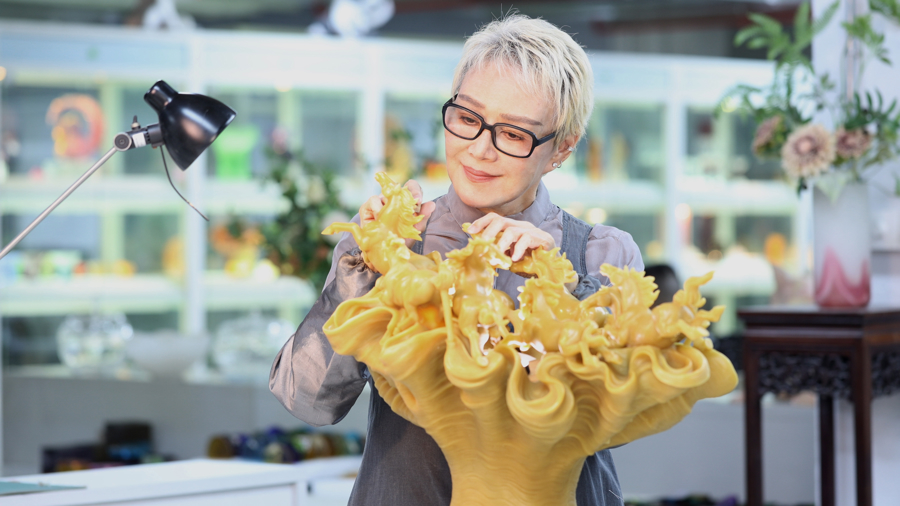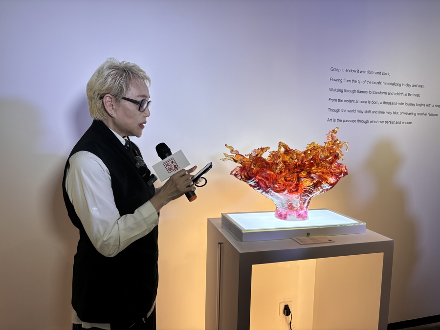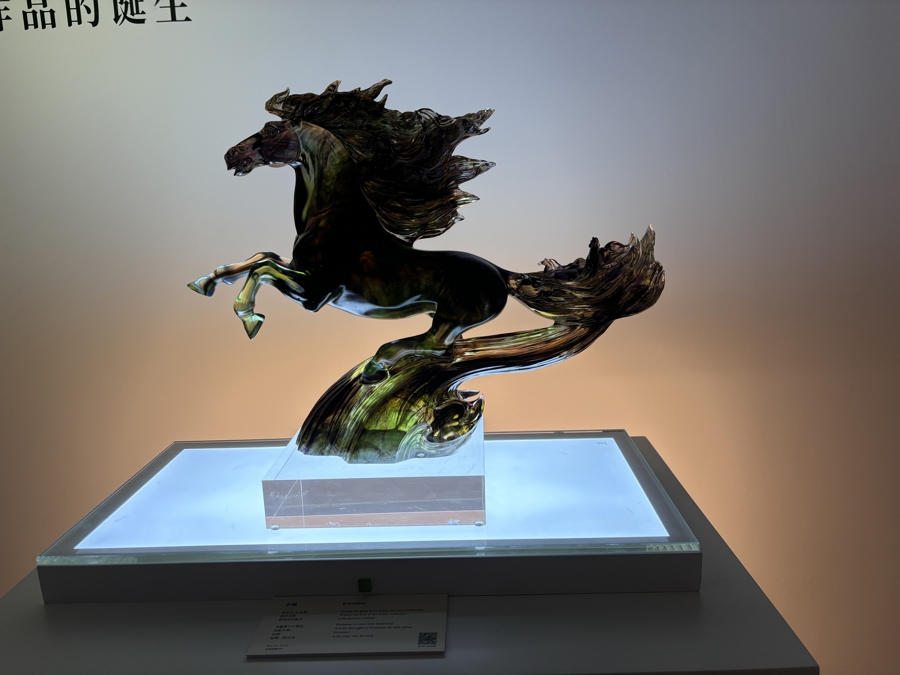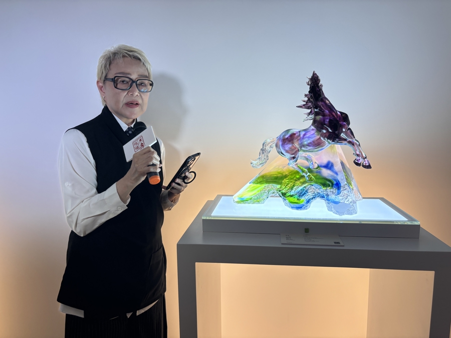 为什么选择琉璃?杨惠姗回答,琉璃在脆弱与坚韧之间、凝固与流动之间,诞生了一种新的存在。这种矛盾的特质,恰如她对马的印象——优雅与狂野并存,温柔与力量共生。杨惠姗表示,“1987年至今,琉璃工房总共创作了59匹马。‘信念决定不凡——从一念,跃腾千里’系列作品延续了琉璃工房的创作传统与坚持。这些马不只是雕塑,它们更像是我们一路走来的写照。”